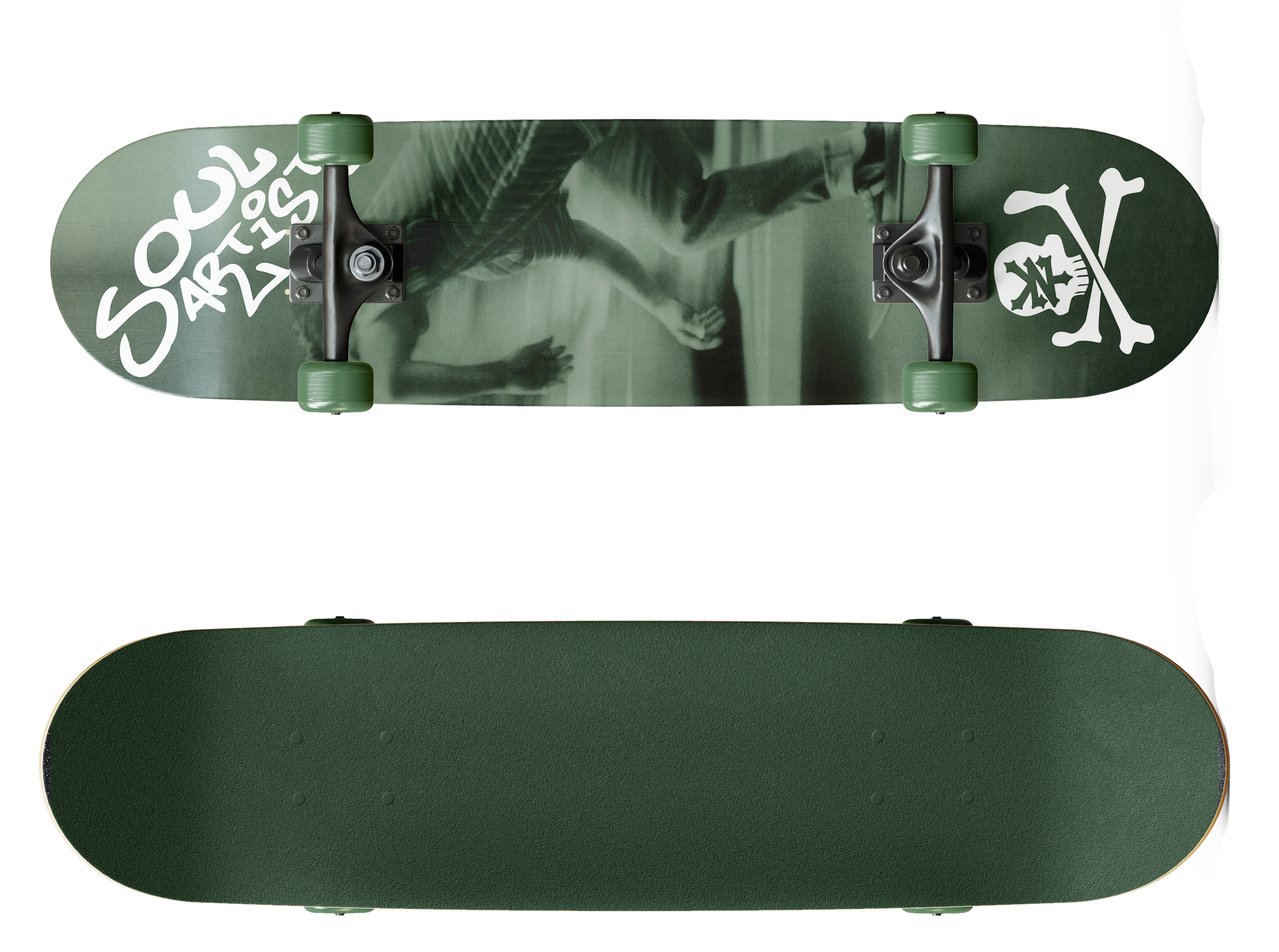 Deck Design: Combines layered textures, skate photography, and minimal branding — like something you'd see flying down an empty Brooklyn stair set.